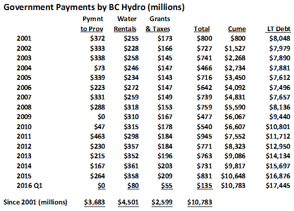 Since Liberals assumed power, BC Hydro has paid $10.8 billion to the provincial and local governments. In the same time period, the utility’s long term-debt rose by $9.4 billion. Consequently, it is a simple argument to say that every dollar transferred to government was a borrowed dollar.