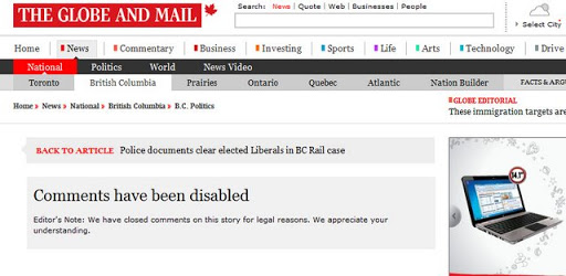 PS While The G&M cowardly closed off comments, many of us got back at them by posting Replies on other areas of the BC POLITICS sections. Shame on the G&M for forcing this.