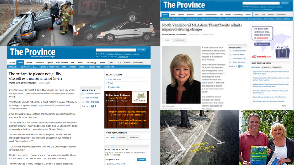 “Fortunately, Mark Jette took his time and considered all the options in a case that required intense review, lasting over a year. No doubt, Mr. Jette sacrificed greatly to handle the file. He is after all, a very successful and senior lawyer. He showed his skill by convincing Jane to plead guilty to a minor motor vehicle act charge that might not even have been proved in court. Doing it this way allows the crown to apply the fine that Ms. Thornthwaite generously agreed to pay to Mr. Jette’s legal costs. Everyone’s a winner.”