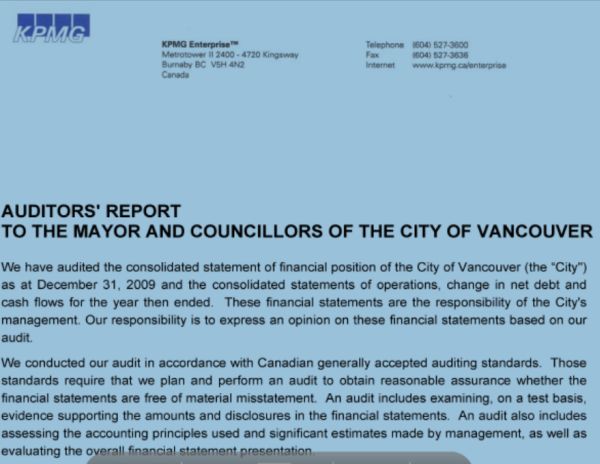 The fact is that municipalities are already audited by independent experts. I know because long ago I often worked on municipal audits when I was employed with a firm of Chartered Accountants. In a bit of checking today, I noted that KPMG is the independent auditor for Vancouver City, Victoria and North Vancouver, among others. Audit reports are typically published on municipal websites.