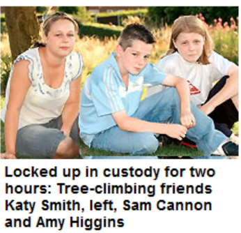 “But the afternoon adventure turned into a frightening ordeal for Sam Cannon, Amy Higgins and Katy Smith after they climbed into the 20ft tree – then found themselves hauled into a police station and locked in cells for up to two hours.