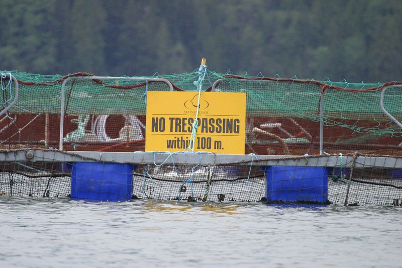 On September 24, Ms Hoyseth received an email from a provincial biologist that a a large pipe used to suck up dead farm salmon was lying on the bottom “full of dead fish,” right where the bubbles had been reported.
