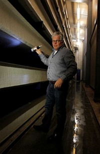 Bout uses gravity to circulate the water eight times an hour — traditional farms change water once hourly — running it through cleansing filters each time it drops to the level below. He says his electricity costs are one-quarter of a similarly sized farm that uses standard tanks.
