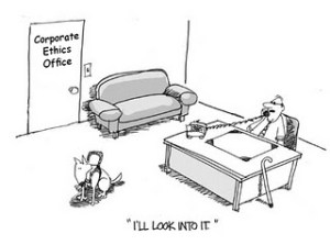 I chuckled at the cartoon of the sightless corpporate ethics officer who promised to “look into it”.