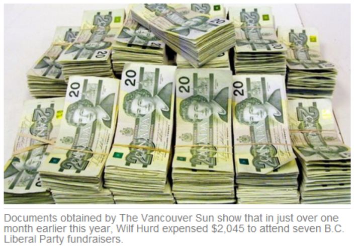 Documents obtained by The Vancouver Sun show that in just over one month earlier this year, Wilf Hurd expensed $2,045 to attend seven B.C. Liberal Party fundraisers.