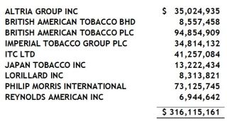 According to the most recent inventory of bcIMC investments made public, British Columbia holds these equity positions in the tobacco industry: