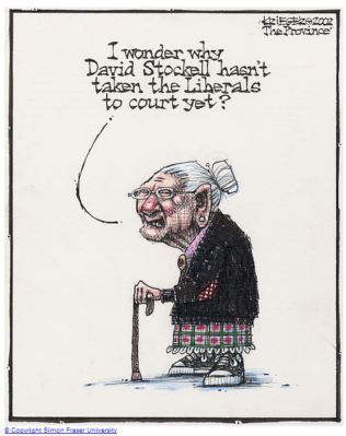 The fudge-it budget meme was a creation of right wing business interests, acting on behalf of Gordon Campbell’s BC Liberals. Party member David Stockell, with funding from far-right organizations, filed a lawsuit (Leonard Friesen, Holly Kuzenko, Mildred Umbarger v. Sue Hammell, Graeme Bowbrick, Ed Conroy) aimed at overturning the 1996 election. The unsuccessful lawsuit was about modest differences between estimated and actual budget numbers.