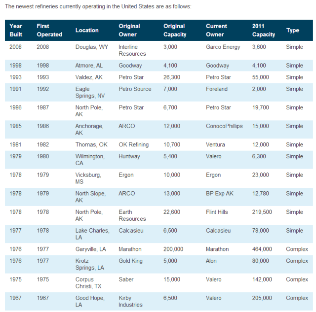 But I didn't realize until Black explained it that new refineries must be on tidewater to enable the erection of very large pieces of cracking towers manufactured offshore …