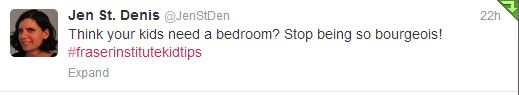 By the way, for a few good smiles, read Twitter entries with the hashtag #FraserInstituteKidTips. Most Fraser Institute material has little worth for anyone beyond the creator and Sourcewatch provides a succinct explanation,