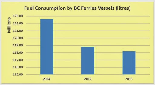 Indeed, the quantity of fuel expended to haul one vehicle or one passenger on a BC Ferries route increased, on average, by 9% since 2004. Truth, my friends, is opposite of what the ferry corporation and its media echo chamber wants you to know.