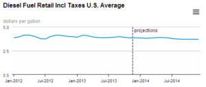 Is this truly a response to “world fuel market conditions” or something else? Projections from the U.S. Energy Information Administration (EIA) indicate the latter is correct. First, given the glut of North American oil, EIA expects stable prices in 2014: