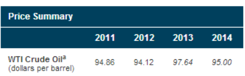 Is this truly a response to “world fuel market conditions” or something else? Projections from the U.S. Energy Information Administration (EIA) indicate the latter is correct. First, given the glut of North American oil, EIA expects stable prices in 2014: