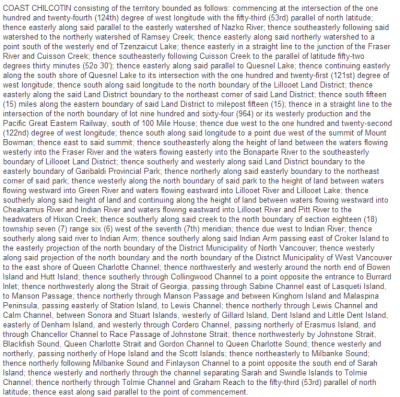 It was a strange riding. Almost 700 words were needed for the official description of its boundaries, four or five times more than a typical electoral district. Surface travel from one interior community to another on the coast involved almost 1,000 kilometers, ferries and at least 15 hours. The constituency map was product of officials who knew nothing of the places.