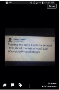 BTW don’t you think it’s just a tiny tacky for Clark’s ex Marrisen (plus a troll friend) to be on twitter attacking child singer Raffi for supporting teachers and kids? When Raffi is seen as the enemy boy we’ve got them on the run? Next week who knows? They might be after some Sesame Street character for being too pro teacher. Only in wacky BC….