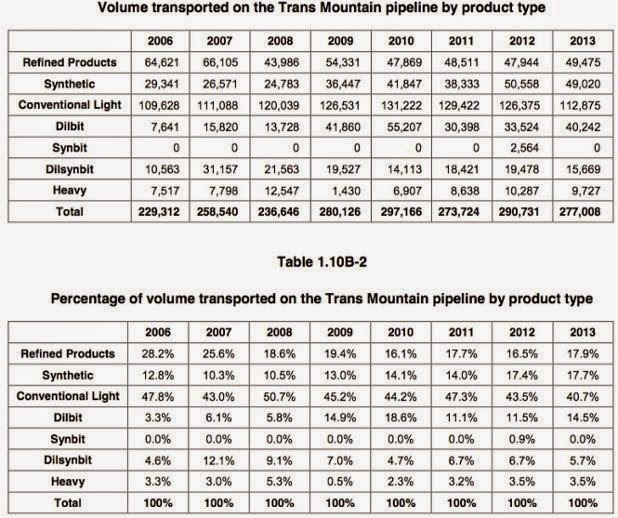 Looking at their own numbers, it clearly appears the Trans Mountain has remained primarily a crude oil pipeline. The largest amount of dilbit ever carried as a percentage of total annual volume was 18.6% in 2010.