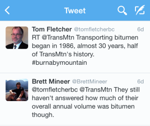 Because the bitumen coming out of Alberta is too thick to flow through pipes on its own, it needs to be diluted using a cocktail of solvents and derivatives of natural gas in order to go from point AB to BC. The industry widely acknowledges dilbit poses a greater risk of corrosion and other technical challenges, therefor requiring a greater level of maintenance and monitoring to ensure their safety. This was a concern oft brought up by protesters and opponents of the Trans Mountain proposal but it was a concern easily brushed aside by Fletcher and the communications staff running the Trans Mountain twitter account: