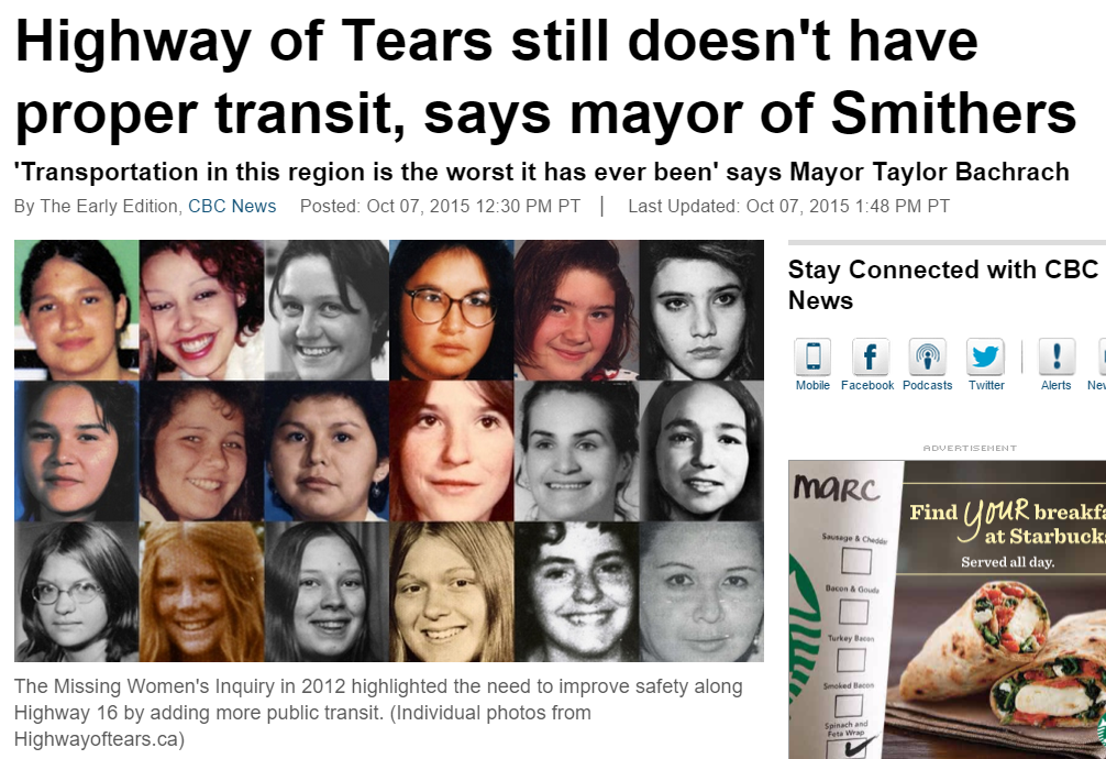 “…I checked with an operator and discovered that a 25-passenger bus with two drivers could shuttle from Prince George to Prince Rupert and back three times a week at a yearly cost of about $220,000. That’s cost, no operator mark-up but it would change things on the Highway of Tears.