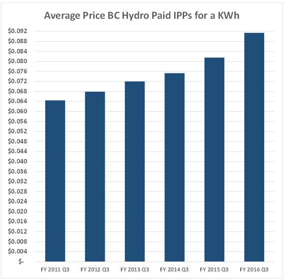 Meanwhile, IPPs in British Columbia saw the average rate paid to them rise from 8.37¢ to 9.14¢, almost 10%.