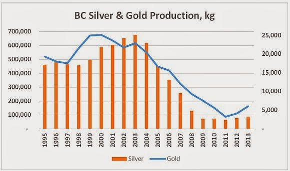 My examination of production and price statistics resulted in a concern about government’s ability to collect all of the taxes it is due. Under BC Liberals, downsizing and “red-tape” elimination has resulted in reliance on self-reporting of production volumes and revenue and expense reporting. Particularly in precious metals production, government has no way of accurately knowing what is due.