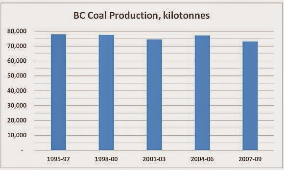 http://www.llbc.leg.bc.ca/public/pubdocs/bcdocs2014/539730/ic_2014-01.pdf Page 7 of 22 “Coal production in the province of all types was estimated at approximately 31.2 million tonnes for the year”