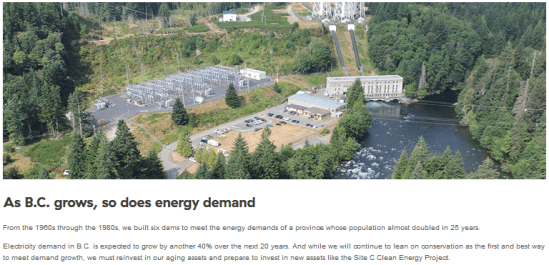 Years ago, BC Hydro developed expansion programs to prepare for demand growth that it projected to be 40% over 20 years. In fact, it still uses those numbers in public communications, as shown today on this web page.