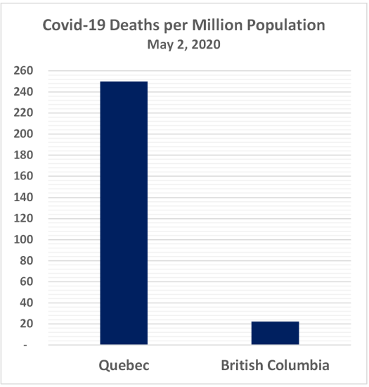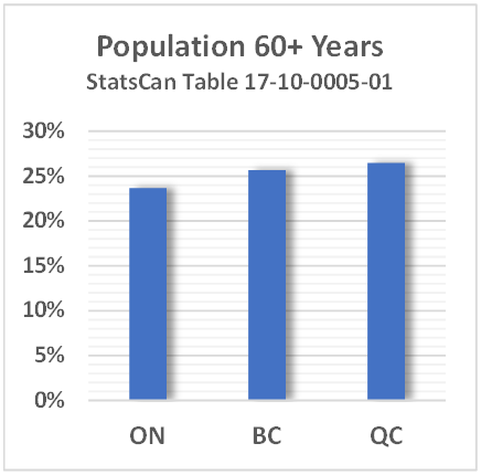 Some believe that Quebec is more vulnerable to Covid-19 deaths because its population has larger numbers of vulnerable seniors. Statistics Canada data suggests that can only be a small factor.