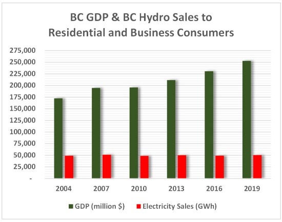 I have written that BC Hydro’s energy outlook is rooted in the 20th century, when electricity demand moved inexorably upward. Executives assumed growth in GDP resulted in need for additional energy.