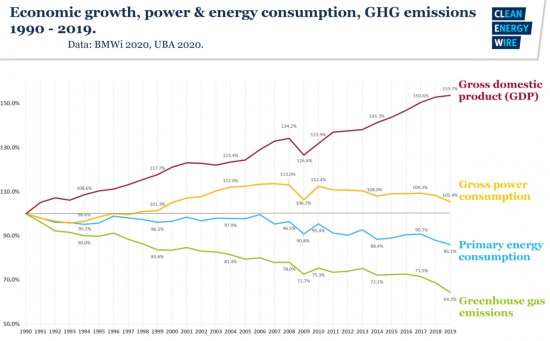 This chart is from Germany. Although GDP has been rising, energy consumption has fallen in the last 15 years.