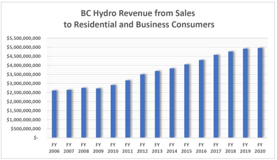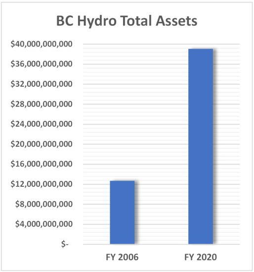 Given the many years without growth in the amount of electricity being sold to residential and business consumers, it should surprise that assets employed by BC Hydro tripled.