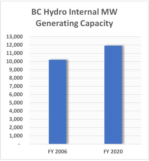 Despite lack of sales growth and private power purchases, BC Hydro added to its own generating capacity and, of course, is building Site C to add yet more.