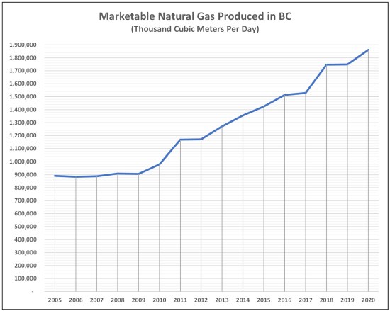 While natural gas producers now pay nothing to the BC public in comparison to earlier days, production of the fossil fuel has about doubled in the last ten years.