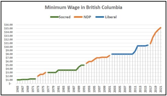 Far-right BC Liberals refused to increase the minimum wage from 2001 to 2011, a period that saw 23% inflation. At the same time, Gordon Campbell’s government legislated tax cuts for the province’s wealthiest citizens and dramatically raised salaries paid Ministers, senior bureaucrats and crown corporation executives. (Reviewed here in my 2009 article.)