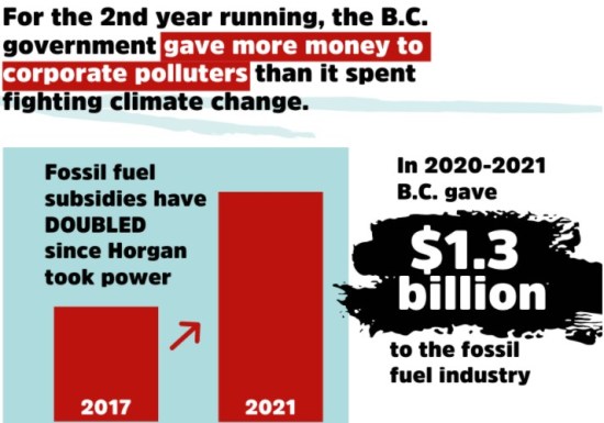 For example, while an extraordinary heat wave envelopes western North America, and concern for climate change mounts, BC NDP and BC Liberals promote harmful fossil fuel projects that will cost tens of billions of taxpayer dollars. Not discussed in corporate media.