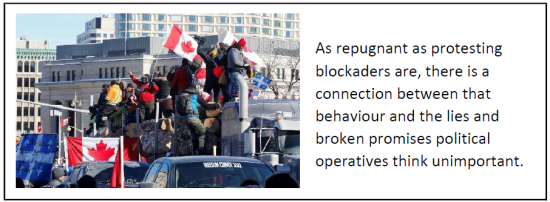 2. I now encourage people I talk to to consider that our government is corrupt and act accordingly. It is difficult for most to believe but once accepted the world becomes understandable. We as a population have been gaslit by our leaders and anyone not touting the party/corporate line will be silenced. I almost spoiled my ballot last September but in the end voted with my nose plugged. Never again, we need another option on our ballots being NOTA, None of the Above. Lacking that I will spoil my ballot next opportunity. Trudeau has lost the trust of just about everybody I know and the Conservatives and NDP can’t offer anything better. I am suggesting everyone spoil your ballot to show your discust with our political class.