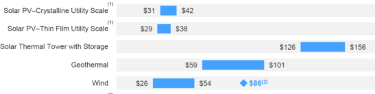 In 2011, when Site C was budgeted at $7.9 billion, BC Hydro stated it would produce electricity at a cost between $87 and $95 per megawatt hour. With its budget now doubled, Site C electricity will cost a great deal more. Meanwhile, leading financial advisory and asset management firm Lazard Ltd. reported levelized costs for alternatives in 2020 as low as US$26. Wind and utility-scale solar now cost a small fraction of Site C power: