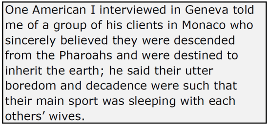 There was also something bigger, and even more disturbing: a domain of libertarian fantasy made real, in which professional intervention made it possible for the world’s wealthiest people to be free not only of tax obligations but of any laws they found inconvenient.