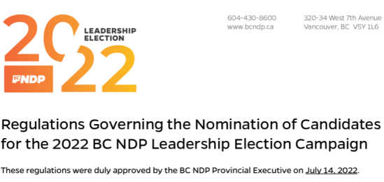 The BC NDP requires any person running for leader to pay $40,000 and sign a “Declaration of Candidate Responsibilities.”