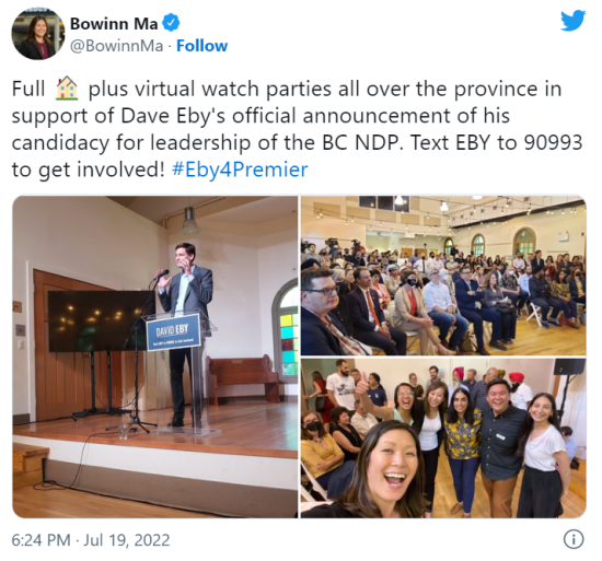 What happens now will, I expect, be determined not just by the new members who signed up in good faith to support a new progressive choice for the party but also by the existing members who’ve been supporting her and who are, like me, disgusted at how a party that we’ve loyally supported, voted for and campaigned on behalf of for years has turned into little more than a clone of Christy Clark’s Liberals. It’s not an accident that the throne speech Clark delivered in May of 2017 was a clone of the NDP election platform. It’s also not an accident that the government BC has had – particularly since 2020 – is a clone of Clark’s government.