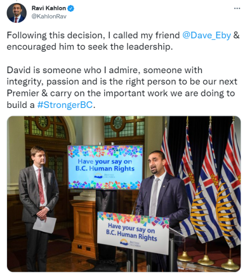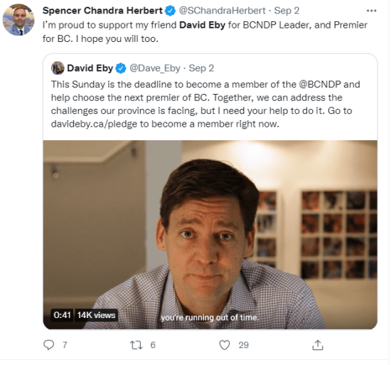 1. The BC Liberals (or whatever moniker they’ll be hiding under) were already going to be hounding Eby or Appadurai to call an election to get a mandate from “the people”. This move will increase the volume. The claim will now be that Eby doesn’t even have a clear mandate from his own party, let alone the general electorate, to assume the premiership.