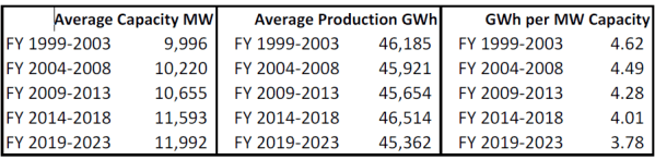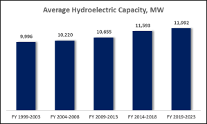 • Barry, you are correct. The production of hydroelectricity has been consistent despite increases in capacity and updates to generating capacity. I added a table with numbers underlying the charts.