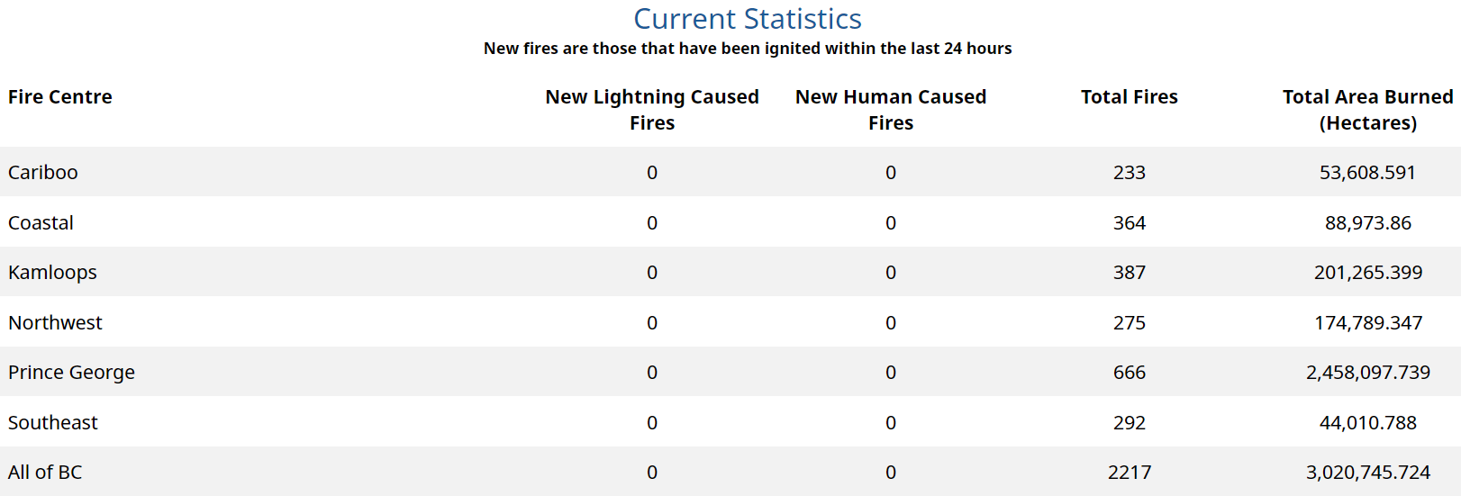 Now, my distrust seems proven. On September 29, BC Wildfire Service added 533,409 hectares (5,334 square kilometres) to the total area burned in the province. That is 93 percent of the amount reported in the preceding four weeks and almost one-fifth of the total for 2023.
