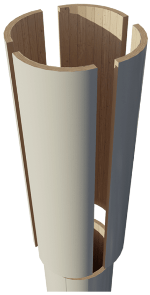 The volumes of wood used per tower depends on the height of the tower and the load it will carry. For example, a 6MW turbine puts a much higher load on the structure than a 2 MW turbine. A typical tower though would range between 300 and 1 200 cubic metres of wood, which is the same as 1.5 – 5 minutes of growth in Swedish forests.”