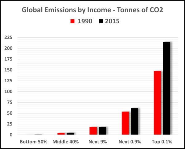 Over 15 years, the world’s wealthiest 0.1% increased CO2 emissions more than the total amount produced by 99% of Earth’s population. The consequence? In the same 15 years, wealth of the top 0.1% almost doubled.