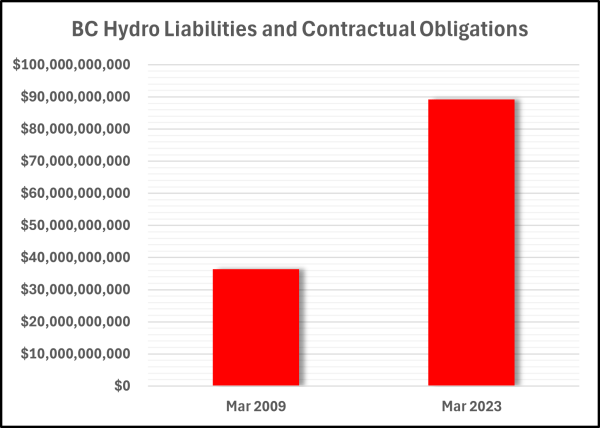 Fifty-four percent of debt growth between March 2009 and March 2023 involves contractual obligations, with almost all of that resulting from BC Hydro’s commitments to independent power producers (IPPs).