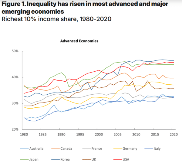 Over the past four decades, there has been a broad trend of rising income inequality across countries. Income inequality has risen in most advanced economies and major emerging economies, which together account for about two-thirds of the world’s population and 85 percent of global GDP.