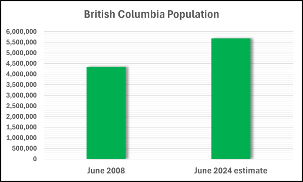 Charts displayed here are made from BC Hydro’s financial information, both quarterly and annual reports. The population chart uses numbers from the provincial government.