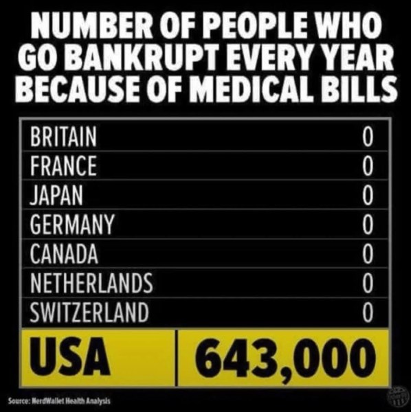 Two-thirds of personal bankruptcies in the USA result from debts incurred for healthcare. That probably explains the hurtful responses on social media after the health insurance guy was murdered. A few examples: