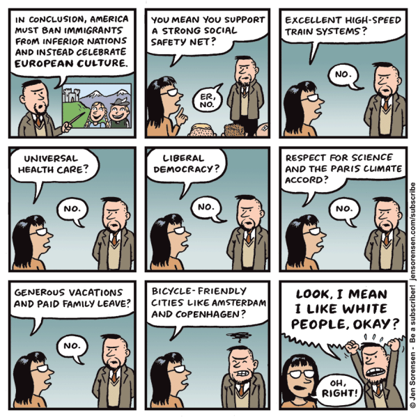 A decade ago, the New York Times included American cartoonist Jen Sorensen on a short list of the “most gifted lifters of political veils and pretenses.” Her work might be more relevant in 2025 than it has ever been.