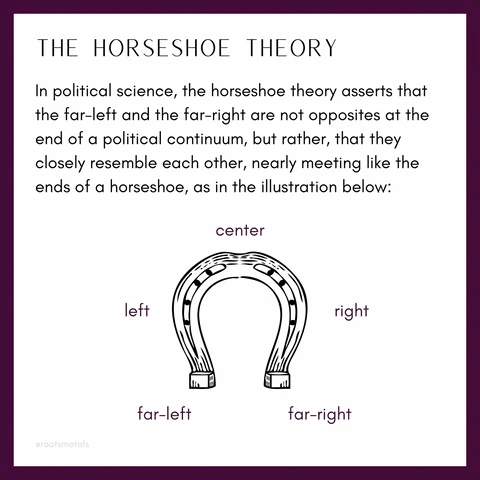 I have never liked the left-right, straight line concept of a political spectrum. I prefer to think of a u-shaped curve that moves from progressive to reactionary, with extremes of both sides sharing similar ideas.